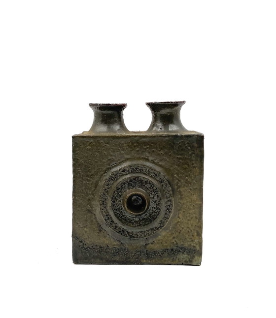 Donkergroene brutalistische vaas van keramiek Italië 1980 H 21 cm - 16,5 × 9,5 cm Condities: uitstekend, geen defecten