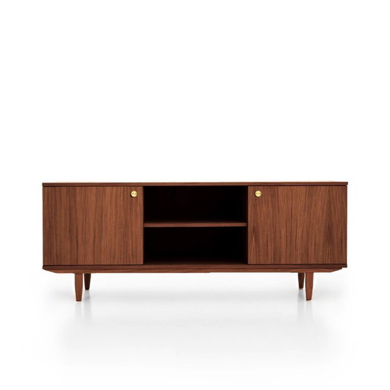 Dit model is een Scandinavische klassieker, ideaal als RTV-ladekast. Dankzij zijn compacte formaat past hij in elke woon- of slaapkamer. Tegelijkertijd biedt hij voldoende ruimte voor alle benodigde apparatuur, zoals decoders, een router of een gameconsole. Aan de zijkanten zijn klassieke deuren geplaatst op Blum-scharnieren met softclose-mechanisme. Achter elk paar deuren bevindt zich een legplank. In het midden van het meubel bevindt zich ook een legplank.
