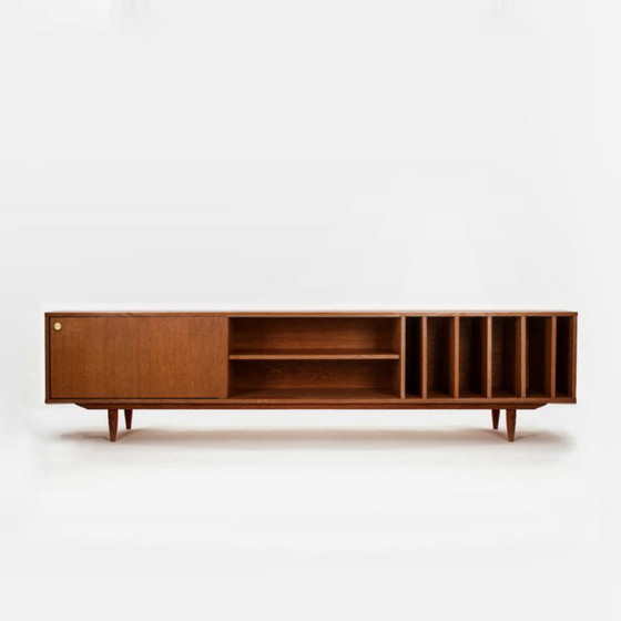 De rest van het dressoir bestaat uit stijlvolle verdelers, die in stappen van 5 cm verstelbaar zijn voor het opbergen van vinyl, favoriete tijdschriften of andere schatten.