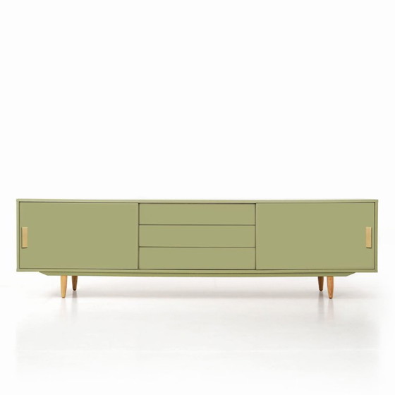 De ladekast combineert de mogelijkheden van de lades en de planken achter de schuifdeuren. Het is een stijlvol en multifunctioneel meubelstuk dat een woonkamer, studeerkamer of kantoor kan sieren.