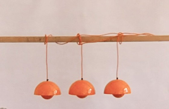 Drie originele Flowerpot lampen, in 1968 ontworpen door Verner Panton voor Louis Poulsen.