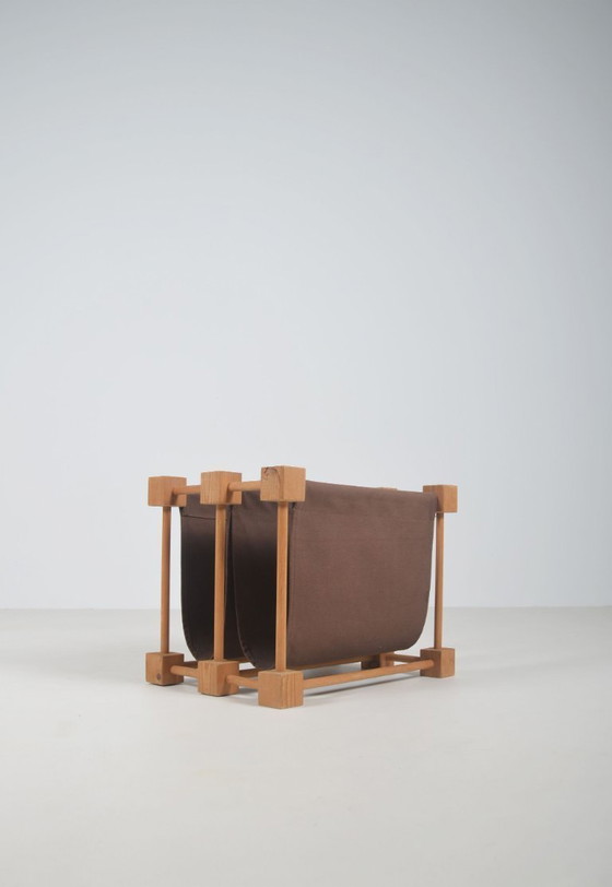 Dubbele magazinehouder in hout met linnen, jaren '60
