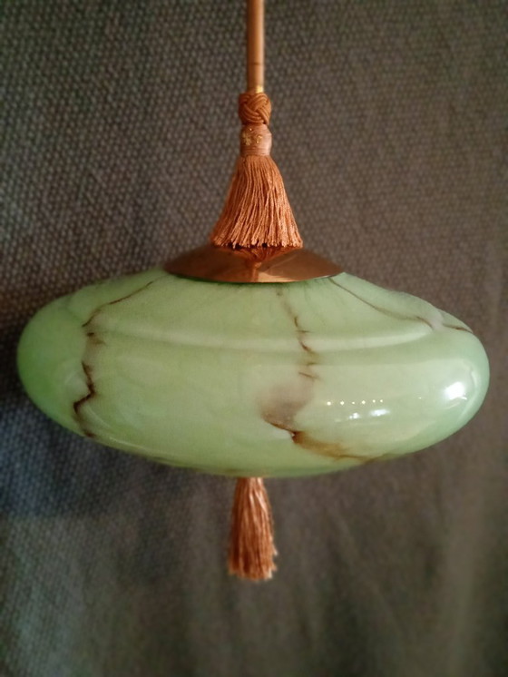 Prachtige vintage Art Deco plafondlamp met groen opaalglas