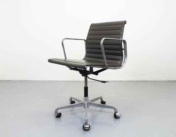 Originele fauteuil in goede algemene staat. De verchroomde afwerking is niet meer zo glanzend als vroeger, maar is door de jaren heen dof geworden. Het leer vertoont wat imperfecties aan de randen, zoals afbladdering, maar het mechanisme werkt perfect.