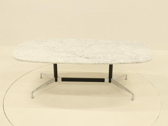 Eames Segmented Ovale Eettafel in Wit Marmer en Roestvrij Staal.