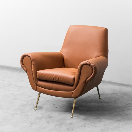 ECO-LEREN FAUTEUIL GIGI RADICE MINOTTI 1950 VINTAGE MODERN ANTIEK