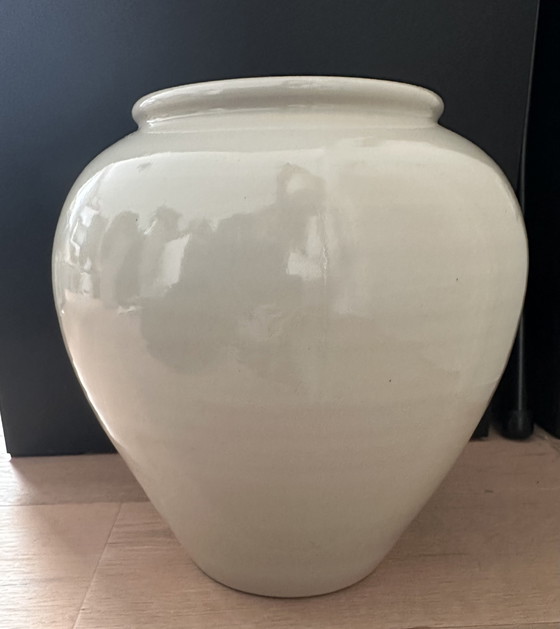 Ontdek de tijdloze elegantie van deze vintage, handgedraaide vaas van het gerenommeerde Nederlandse familiebedrijf ECRI, gevestigd in Katwijk. Dit prachtige stuk, gesigneerd met "EK" aan de onderkant, getuigt van vakmanschap en Nederlands keramisch kunstenaarschap.