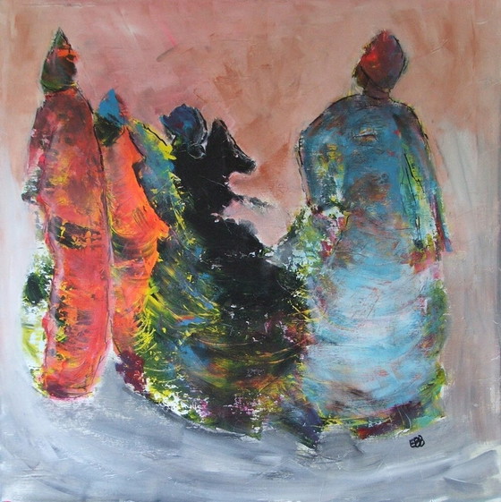 Waarom ben je dan gaan schilderen, vroeg ik. Haar antwoord was verbazingwekkend. Je verwacht een heel verhaal over opleiding, kunstacademie en buitenland. Maar ze zei: "ik was met mijn zusje bij Leen Bakker en mijn zusje kocht een aantal kleine canvassen en toen dacht ik, laat ik dat ook eens proberen."