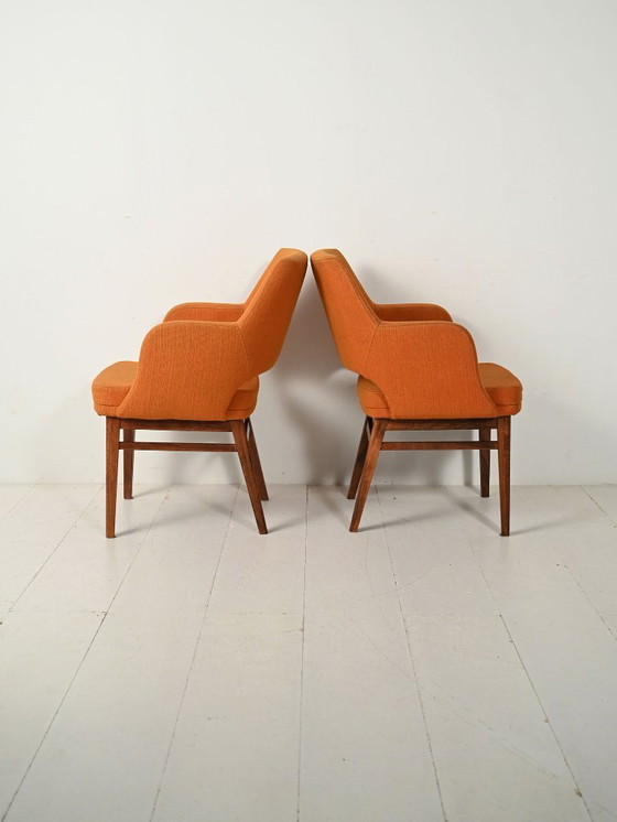 Een paar oranje Oslosund fauteuils van Kinnarps, jaren 1950.