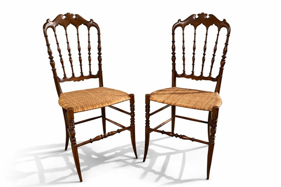 Een paar originele Chiavari-stoelen uit de jaren 60.