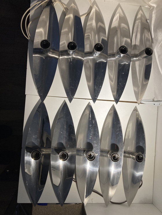 Een paar vintage Goffredo Reggiani wandlampen uit de jaren 70 met 5 lampen.