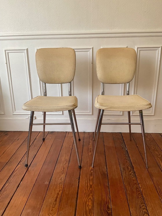 Een paar vintage stoelen uit de jaren 50 - gestempeld - verchroomd staal en gepatineerd kunstleer.
