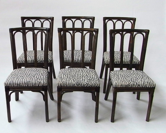Eetkamerstoelen (6) gemaakt van rotan en bamboe door McGuire, VS, jaren 70
