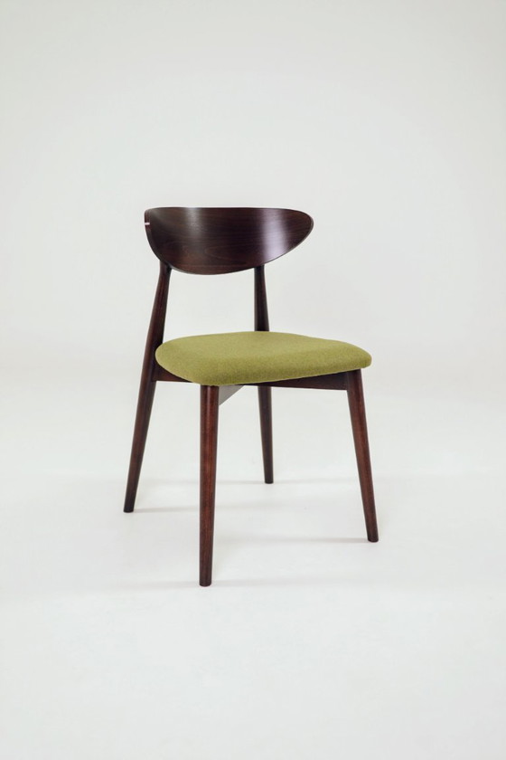 Set van 4 eetkamerstoelen Scandinavisch design gloednieuwe bekleding stof eucalyptus groen 💚 beukenhout afgewerkt in walnoot houtkleur en satijnen afwerking beschermd door vernis hoge weerstand tegen UV water alcohol.