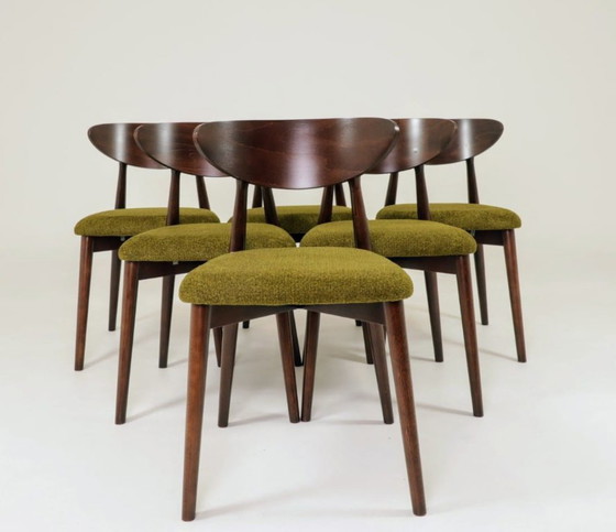 Eetkamerstoelen set van 6, bekleding van donker walnootgroen gras, natuurlijk ontwerp