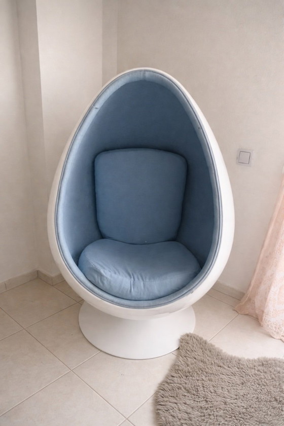 "Egg Chair" / Eistuhl - Πολυθρόνα Σχέδιο Space Age - Λευκό/Γαλάζιο // Design Egg Chair / Lounge Swivel Chair - White/Light