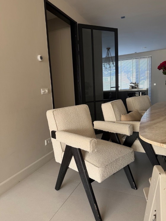 Stijlvolle Eichholtz Greta eetkamerstoelen in zeer nette staat. Luxe uitstraling, comfortabel zitcomfort en hoogwaardige afwerking. Ideaal voor een chique eetkamer of designinterieur.