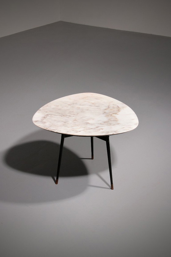 Elegante bijzettafel van marmer en messing – Chique kleine salontafel of bijzettafel
