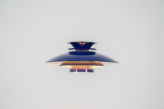 Elegante blauwe hanglamp van Belux (Denemarken, jaren 80).