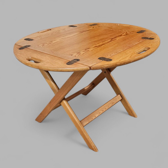 Het dienblad heeft opklapbare zijkanten met messing beslag en is afneembaar voor het serveren van .... Het frame kan worden ingeklapt en netjes worden opgeborgen.