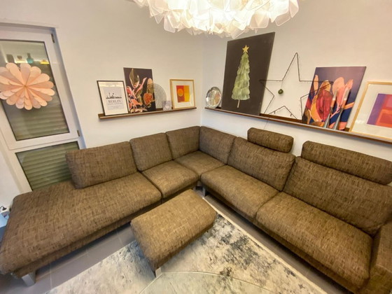 Grote gestoffeerde hoekbank Erpo CL-500 met poef, van hoge kwaliteit en in goede staat.