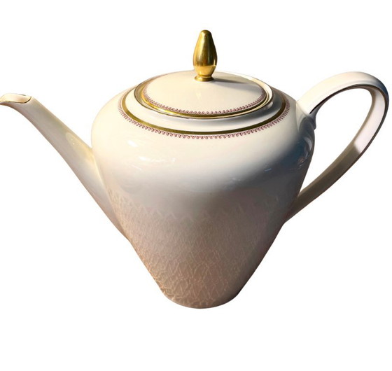 De tijdloze vorm, gecombineerd met de gouden knop en het fijne lijnpatroon, maakt deze theepot perfect voor zowel gebruik als decoratie. Een prachtige aanwinst voor elk klassiek theeservies of vintage collectie.