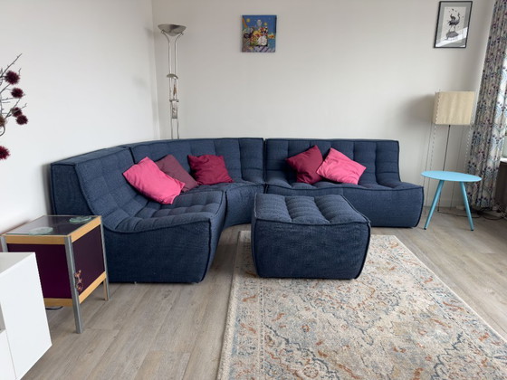 Originele modulaire bank van Ethnicraft, model N701. Uitgevoerd in de kleur blauw. De set is in december 2025 gekocht.