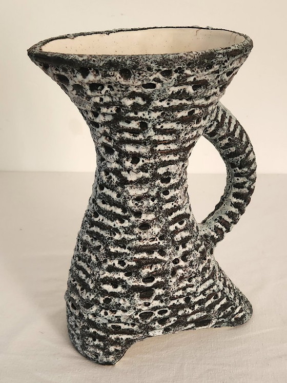 Originele Fat Lava vaas van zeegrijs/wit keramiek, jaren 1960. Gesigneerd Novalaise. In zeer goede staat. Hoogte 26cm. Met zorg verzonden
