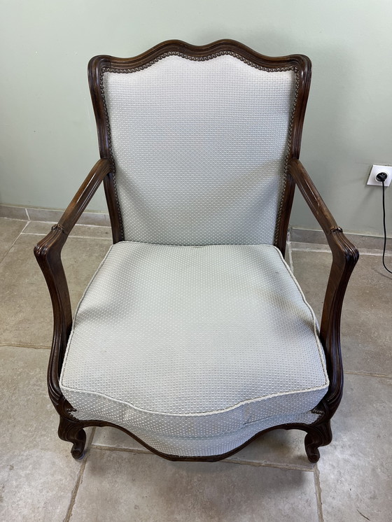 Kabrioletfauteuil in Louis XV-stijl uit de jaren 50 met teruggeplaatste moulures.