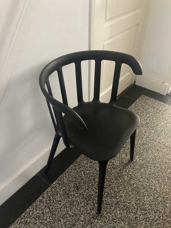 Dit is een moderne fauteuil uit de PS Collectie 2012. Hij heeft een strak zwart ontwerp gemaakt van duurzaam kunststof en biedt zowel stijl als comfort. Het unieke ontwerp van de rugleuning voegt een eigentijds tintje toe, waardoor de stoel een geweldige aanvulling is op elk modern interieur.