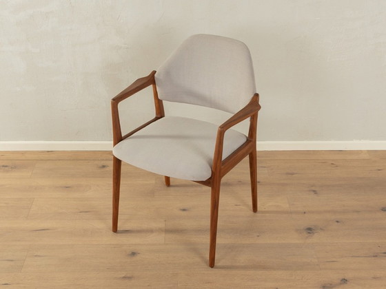 Klassieke fauteuil uit de jaren 1960 van Wilkhahn Model "440b"met walnootfineer. De stoel is opnieuw bekleed en bekleed met een hoogwaardige stof in lichtgrijs. Gemaakt in Duitsland, Fabrikant: Wilkhahn.