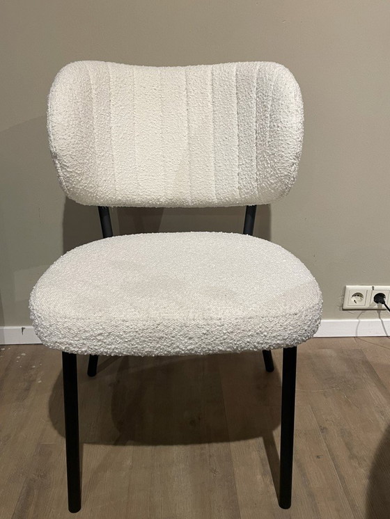 Feelings Sofia eetkamerstoel (set van 6) Uitgevoerd in: Stof Boucle Kleur wit Afmetingen: Breedte: 55 cm Zitdiepte: 45 cm Totale diepte: 64 cm Zithoogte: 51 cm Totale hoogte: 84 cm