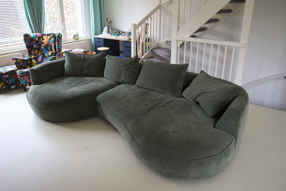 Flexlux Samone bank in ribfluwelen bekleding, 2 jaar oud.