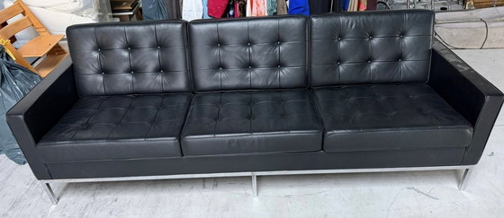 Ervaar de tijdloze elegantie van de Florence Knoll 3-zitsbank, een meesterwerk van modern design. Bekleed met hoogwaardig zwart leer, straalt deze bank verfijning en stijl uit en is perfect voor elk eigentijds interieur. Ontworpen door het iconische Florence Knoll, belichaamt deze bank de essentie van Mid Century Modern design. Het luxueuze zwarte leer biedt niet alleen een comfortabele zitervaring, maar voegt ook een vleugje klasse toe aan uw woonkamer. Het slanke metalen frame garandeert duurzaamheid en stabiliteit, terwijl het minimalistische design moeiteloos in elke ruimte past. Voeg een vleugje designhistorie toe aan uw interieur met deze prachtige bank.