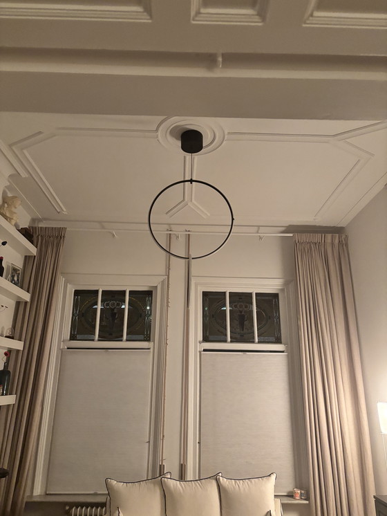 Verrijk uw interieur met de verfijnde elegantie van de Flos Arrangements hanglamp. Deze prachtige lamp combineert modern design met tijdloze charme en vormt een opvallend middelpunt in elke ruimte. De slanke, zwarte metalen ringen, elegant opgehangen, verspreiden een zachte, sfeervolle gloed die de ambiance van uw interieur versterkt.