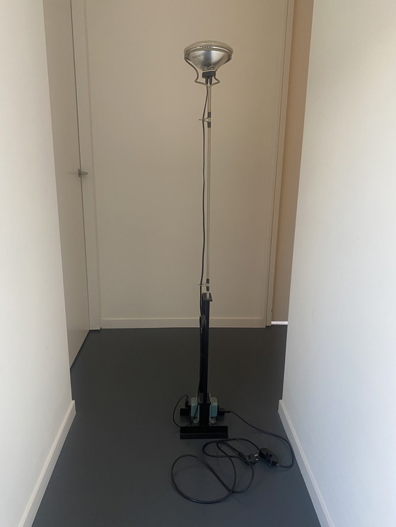 Deze iconische vintage vloerlamp van Flos biedt indirect licht (geen led verlichting) wat op het plafond schijnt. Er zit geen dimmer op. De lamp is in uitstekende staat. De autokoplamp maakt ‘m extra bijzonder. Vanwege de kwetsbaarheid van de lamp, gaat mijn voorkeur uit naar ophalen in plaats van verzending.