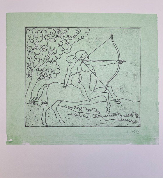 Techniek: zachte vernis op papier, handgesigneerd in potlood door François Xavier Lalanne, in perfecte staat. Het beeldt de centaur af, een Grieks mythologisch wezen, half mens, half paard. Lalanne maakte in zijn carrière meerdere centauren.