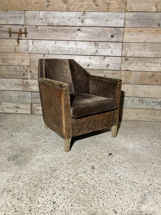 ConditieGoedKleurenBruinMateriaalFluweel, LeerAantal stuks1Hoogte70 cmBreedte60 cmDiepte75 cmZithoogte37 cmGebruikssporenVlekken