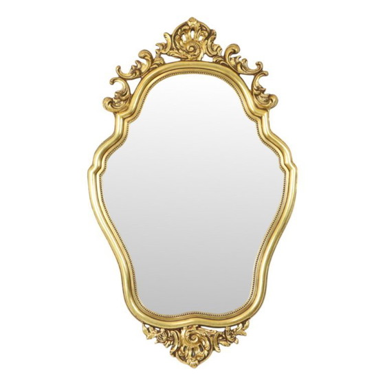 Deze zeer kwalitatieve spiegel is boven en onderaan rijkelijk gedecoreerd met acanthusbladeren, ze is gemaakt uit hars, sierlijke en elegante spiegel, een echte eyecatcher in uw interieur!