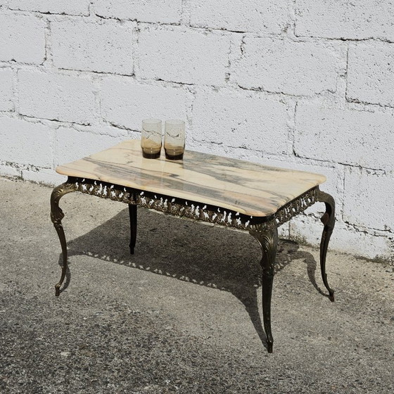 Franse Vintage Marmeren Salontafel met Antiek Bronzen Frame - Cocktailtafel uit de jaren 60