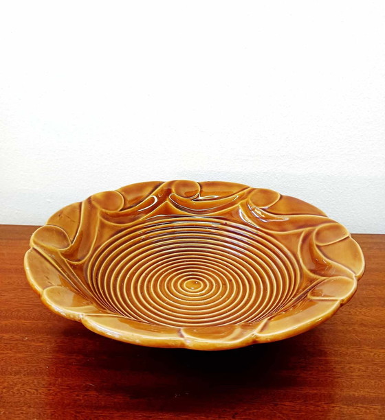 Saint Clément, fruitschaal van vintage keramiek. Fruitschaal gedecoreerd met spiralen en krullen, lichtbruin geglazuurd keramiek. Saint Clément-merk op de achterkant, genummerd 8912 Frankrijk. In zeer goede staat, enkele microchips in het midden. 31 x 8,5 cm. Nette, snelle en zorgvuldige levering.
