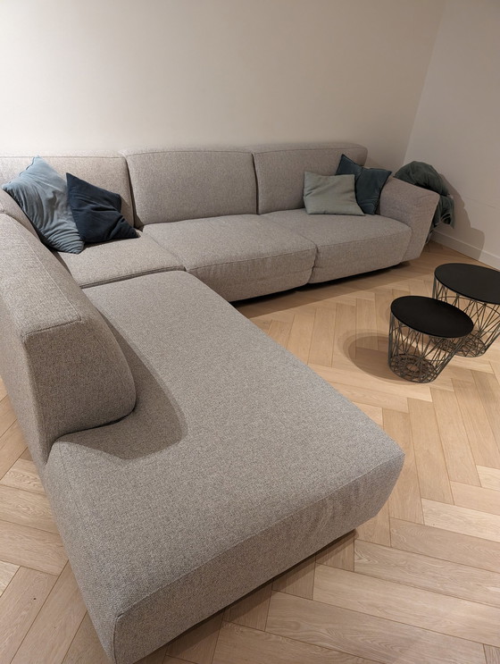 Het is een moderne grijze hoekzetel met zwarte matten pootjes van het merk Furninova. We doen hem weg omdat hij in onze nieuwe woonruimte niet past. We hebben geen huisdieren. In de long chair kan je heerlijk liggen.