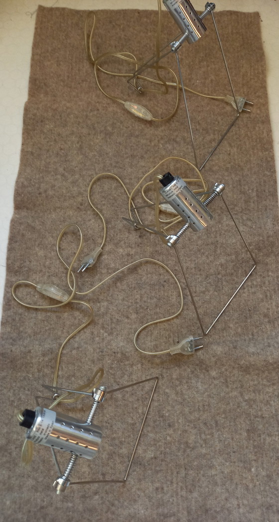 Dit is een inklapbaar tafel lampje van het merk Garcia Garay. Er zijn er in totaal 6. Prijs per 6 lampjes. Het lampje heeft een modern ontwerp met een metalen afwerking. Het is gemaakt van metaal, wat zorgt voor een stevige en duurzame constructie. Ideaal voor gebruik op een bureau of nachtkastje, biedt het lampje een praktische en stijlvolle verlichtingsoplossing. Het is uit te klappen op gewenste stand. Het is geschikt voor kleine fitting en smalle lampvorm zodat het binnen de metalen houder past.