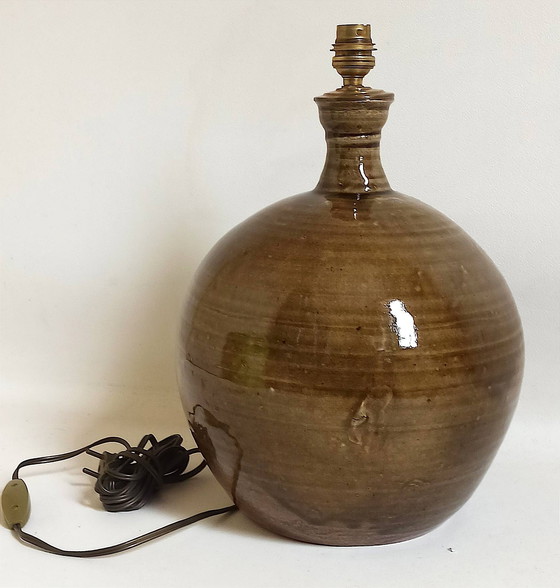 Grote geëmailleerde lamp van steengoed, gesigneerd Alain Magne, La Borne, jaren 1970. Perfecte staat. Dit model wordt geleverd met een kap van gedroogde bloemen in herbariumstijl. Deze kan eenvoudig worden vervangen door een effen of andere lampenkap. Hoogte voet 35,5 cm. Diameter 29 cm. Gewicht basis 3,5 kg. Zorgvuldige verpakking. Levering per koerier.