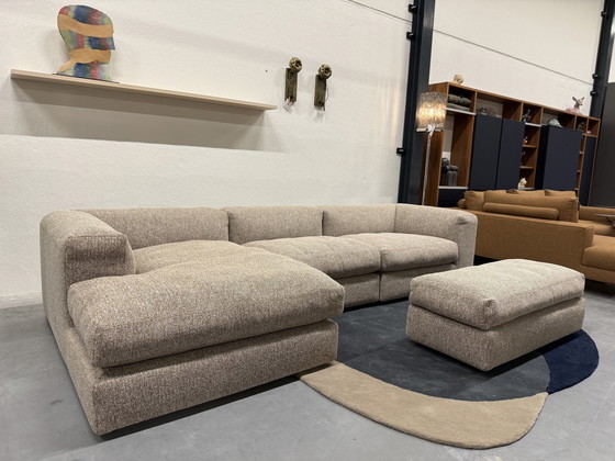 Nieuw Gelderland 2505 Endless hoekbank bestaande uit 3 Elementen CL AL - EL ZO - EL AR. Uitgevoerd in De Ploeg Moss stof in de kleur 13. AFM 118+92+118