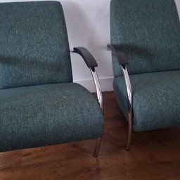 ConditieUitstekendKleurenGroenMateriaalChroomAantal stuks2MerkGelderlandHoogte75 cmBreedte67 cmDiepte87 cmZithoogte38 cm