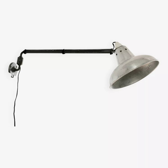 Wandlamp Georges Houillon, Frankrijk, jaren 50. Sporen en putjes van gepatineerd metaal, structuur in goede staat, kogelgewricht. Volledig origineel. Bedrading uit die tijd (moet waarschijnlijk vervangen worden), werkt. Zeer mooi klassiek ontwerp.