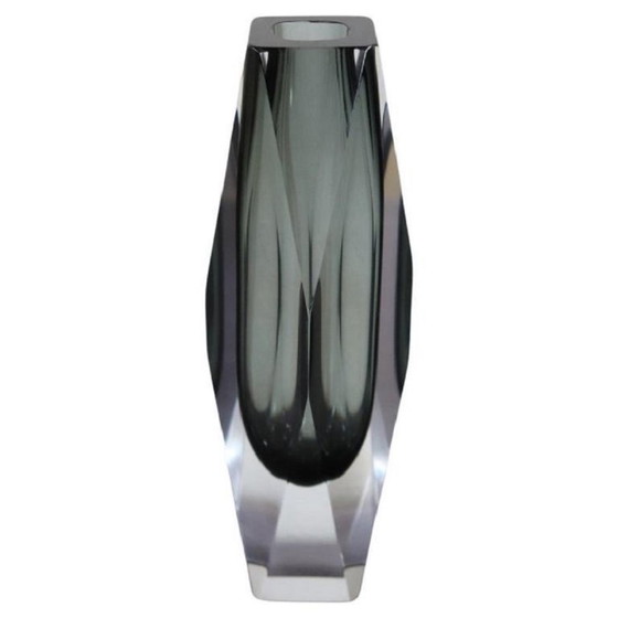 Murano glazen vaas, Italiaans design, jaren 60, rookgrijs en helder. Prachtige vaas van dik glas met een prachtig gefacetteerd design, zeer decoratief. Deze vaas is vervaardigd met de Sommerso glastechniek. Deze prachtige vaas is een waar kunstwerk en past overal in huis. Uitstekende vintage staat. Geen keurmerken of handtekeningen aanwezig.
