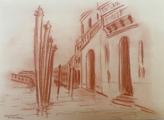 Gesigneerd Sanguine landschap Canal Grande Venetië