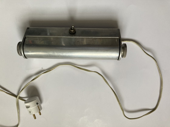 NB: Dit is een jaren '30 uitvoering. Een vergelijkbare wandlamp is door Gispen in de jaren '50 geproduceerd, echter minder subtiel, in een andere materialisering en voorzien van een moderne fitting. Deze lamp lijkt op het nikkelen model Giso 331 uit 1934, maar is afwijkend in de draaiknoppen, de achterplaat en overige details. Goed werkende wandlamp. De bedrading en de stekker zijn vervangen. Het lampje doet het niet en hoort niet bij de verkoop (bajonetfitting).